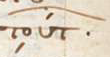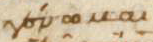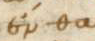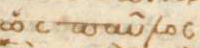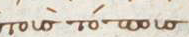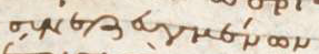 Again, we’re at the end of a line, so the ον get replaced by two "backslashes" above the τ. This is a common Byzantine practice, but it doesn’t show up too often here. Some scribes will almost always write τὸν that way.